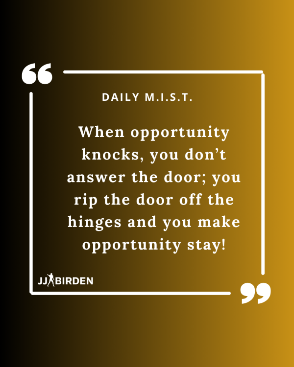 When opportunity knocks, you don't answer the door; You rip the door off the hinges and you make opportunity stay!